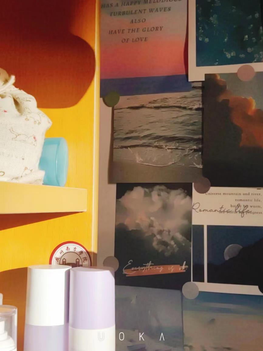 作品简介:有许许多多的明信片,明信片由许多的风景组成,每当回宿舍看到这些明信片,仿佛面对着大自然,就算压力很大,在看到这些明信片后,心情就会得到放松。加上桌面上的广州南方学院勋章,让自己无时无刻知道自己是南方学子,为此努力奋斗。