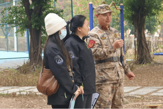 训练场边,总有让人安心的身影。工学院学工办主任唐玉婷老师亲临现场,细致询问同学们的训练进度与身体状况,用真切关怀为大家注入温度力量。2025级指导员更是全程坚守岗位,时而为学子们加油鼓劲,时而关注大家的精神状态,及时疏导训练中的疲惫与压力,用陪伴传递温暖与力量,成为少年们军训路上的“坚实后盾”。医务团队则提前备好常用药品的急救箱,时刻待命应对突发情况。正是这些身影让寒冷的训练场多了一份坚实的保障,让学子们能够毫无顾虑地投入训练。