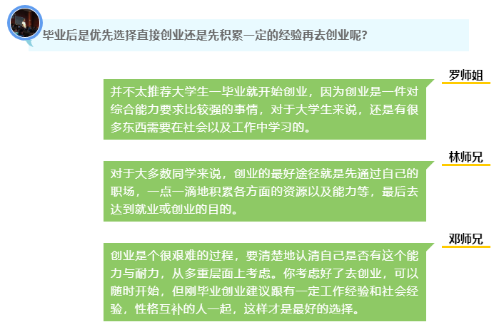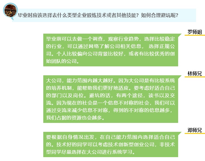 院长指出,同学们最好不要频繁更换实习的企业,要尝试了解企业文化,找到发展的可能性,不必一开始就抱有很高的要求,踏实做事。