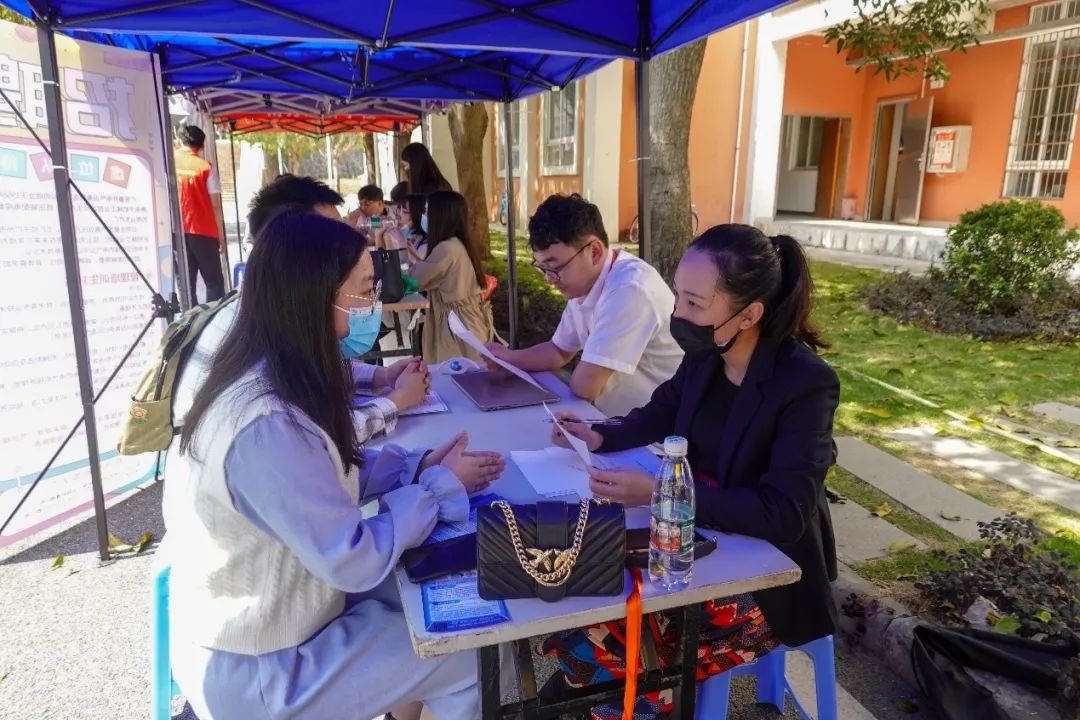 在招聘会过程中,学生们都自信地将自己的简介投递给企业的相关人员,大胆地与他们交流沟通,询问企业各方面的问题,尽可能将自己最好的一面展现给企业看,争取拿下感兴趣的工作岗位。志愿者们也为了将来能更好的就业,在现场向企业的相关人员咨询相关信息,积累求职经验。