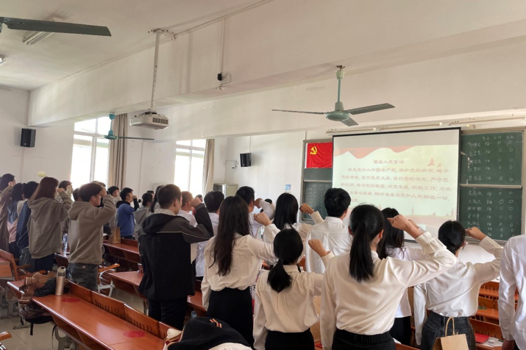 在鲜红的党旗前,支部委员翟晓涵老师带领全体党员重温入党誓词。党员同志们高举右拳、目光坚定、字字铿锵。牢记入党誓词,践行党的宗旨,永葆共产党员的先进本色!