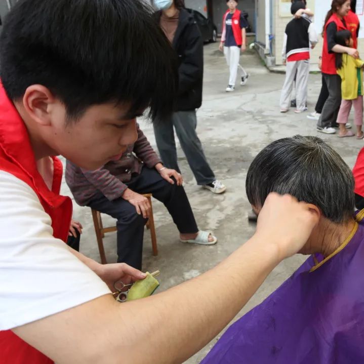 爱之花开放的地方,生命便能欣欣向荣。当义剪组的志愿者们为村民提供免费的理发服务时,老人们都笑意盈盈。志愿者们细心地接待每一位老人,与他们聊天、倾听他们的故事,了解更多村民的点点滴滴。在理发过程中,志愿者们用理发器和梳子为老人们修剪头发,体现了我们的爱心与耐心。当镜子前的老人们看到自己焕然一新的形象时,他们脸上洋溢着自信和喜悦。