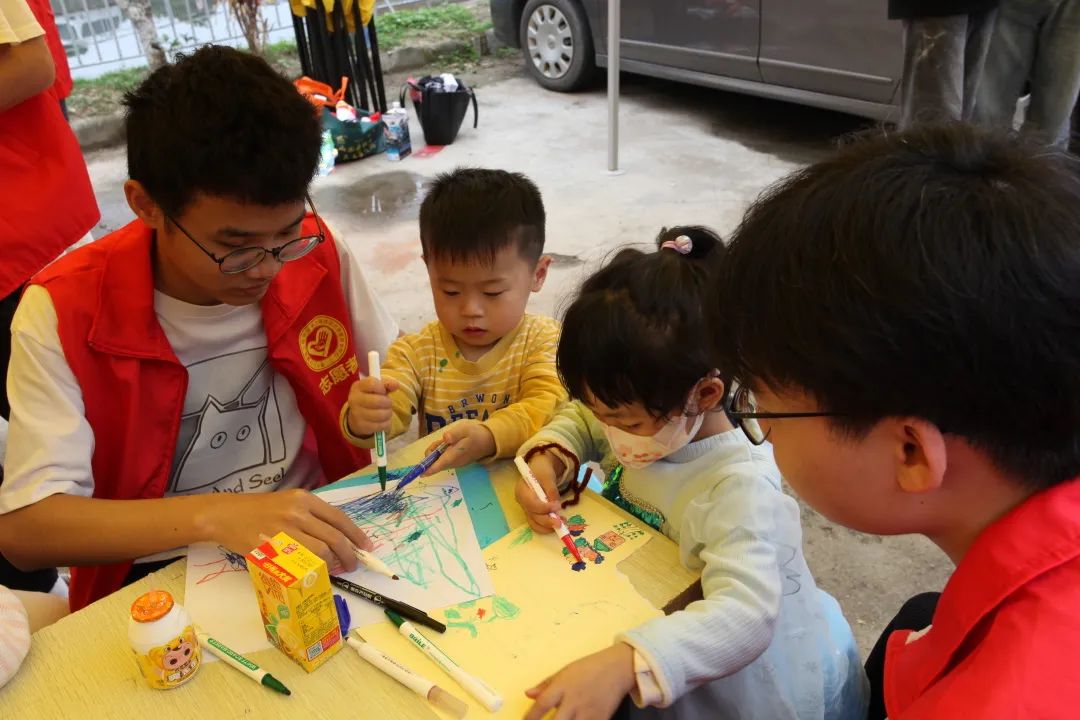 以义教之我 燃雷锋之火。义教组的志愿者们通过画画、写字和做手工等活动,与孩子们一同探索艺术的奥秘,点亮他们的创造力和想象力。小朋友们迫不及待地坐在桌前,志愿者与他们一同握住画笔以涂抹色彩,创造属于他们自己的艺术作品。在志愿者们的陪伴下,小朋友们展现出了可贵的创造力和表达能力,他们用画笔勾勒出了自己心中的世界,用文字书写出了自己内心的声音,用手工制作出了独特的艺术品。