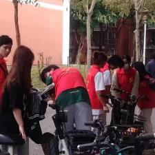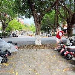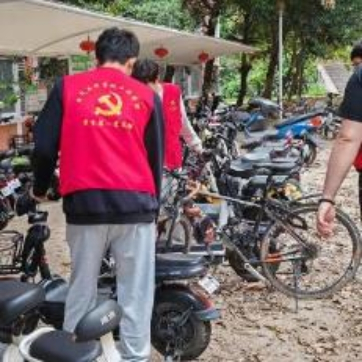 随着电动车在校园内的普及,电动车的数量不断增加,乱停乱放的现象也随之出现,这不仅影响了校园的整洁度和美观度,还可能对师生的日常出行造成不便,甚至带来安全隐患。因此,对电动车进行整理和规范停放,是维护校园秩序和安全的必然要求。入党积极分子们分工明确,对校园乱停乱放的电动车进行整理。
