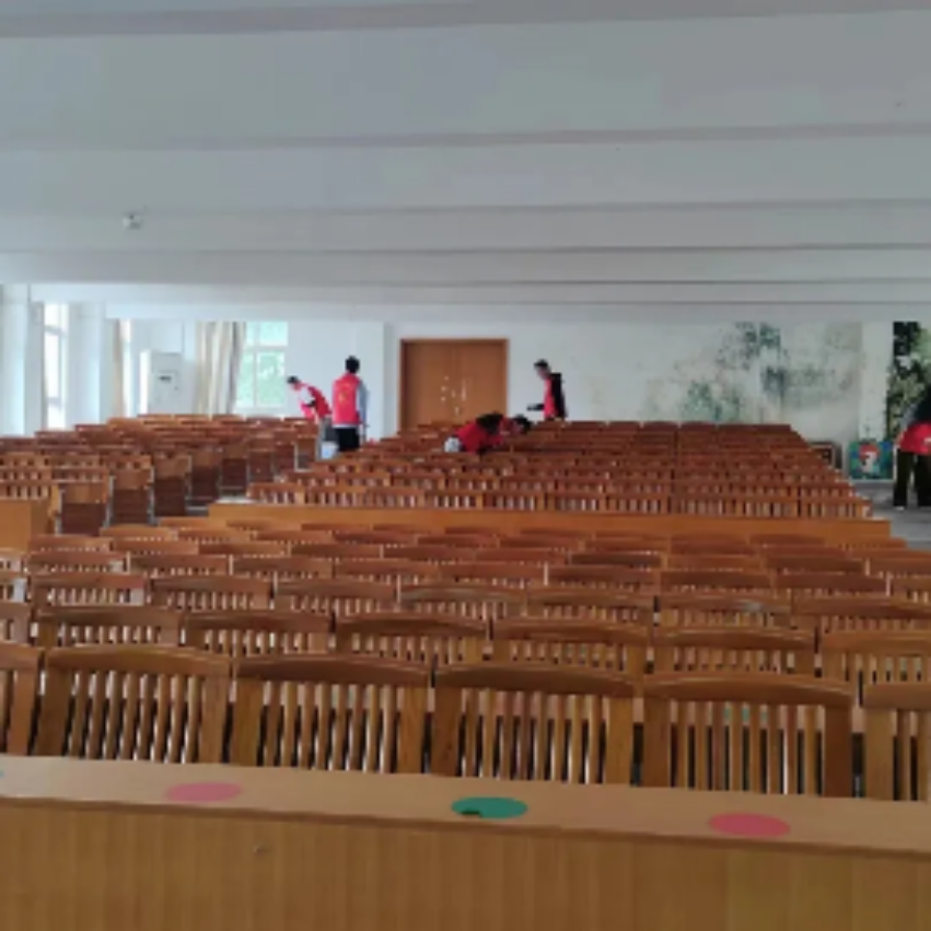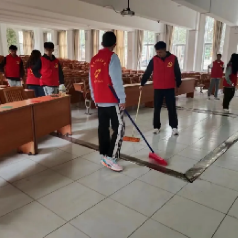 校园桌椅和校园课室卫生杂乱不仅损害校园整体形象,还会影响学生的健康和学习环境。脏乱的环境可能滋生细菌,危害学生健康;同时,杂乱的卫生状况也会降低学生的学习效率和积极性。因此,保持课室卫生整洁至关重要。入党积极分子分成多个小组,对多个课室进行打扫和整理桌椅。