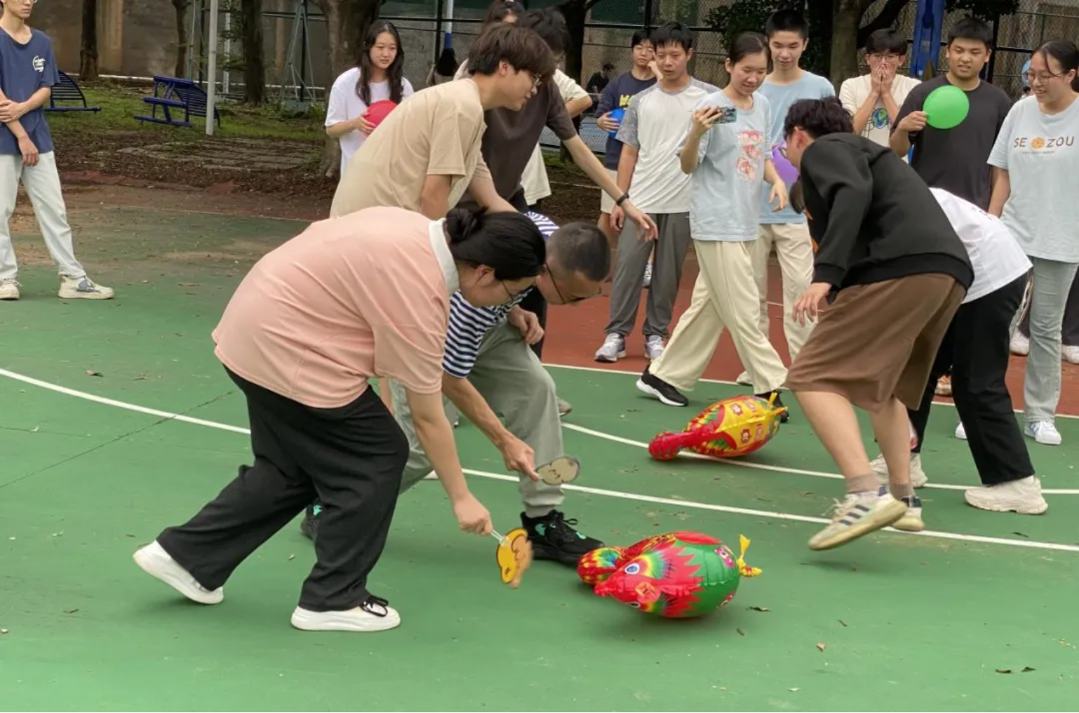 随着老师们致词的结束,本次党日活动正式开始。本次趣味运动会共有5个项目,分别是:螃蟹暴走、企鹅漫步、趣味赶鸡、搭桥传球、抢椅子,通过分组的方式进行比赛得分。在各个比赛中,每一位同学充分展示自身优势,互相支持、互相帮助,共同完成了一个又一个挑战。这些挑战不仅考验了同学们的智慧与体能,使大家在轻松愉快的氛围中加深了彼此间的了解与信任,更有助于团队协作能力的提升。