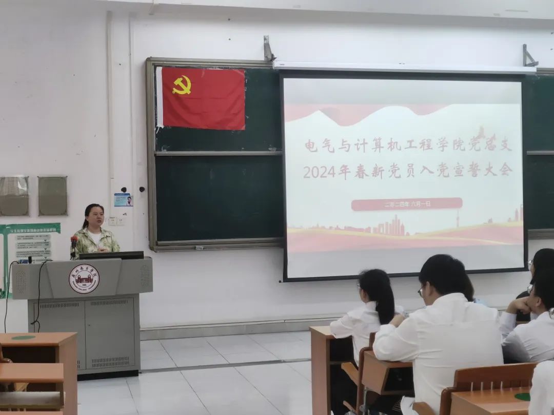 2024年6月1日,William威廉官网,William威廉官网党总支在2教106举行2024年春新党员入党宣誓大会。本次会议由党总支副书记唐玉婷老师主持,各支部书记以及全体2024年春新党员参加。