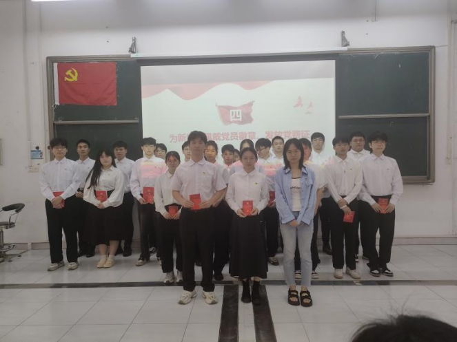 紧接着,唐玉婷老师郑重宣读了本次新接收的党员名单。每一个名字背后都是一段努力与坚持的故事,他们的加入为党组织注入了新鲜血液。全体参会人员对新党员表示热烈祝贺,掌声如潮,将整个会场的气氛推向高潮。