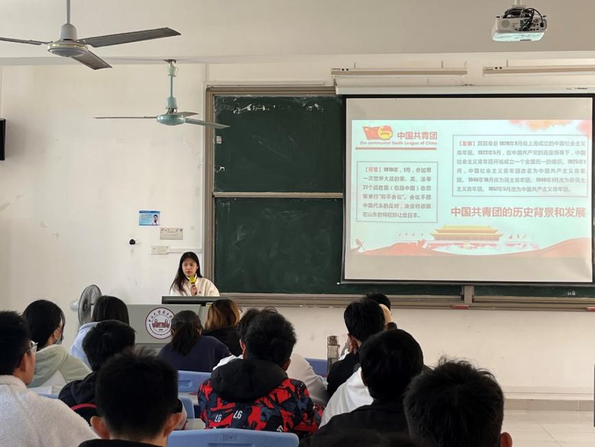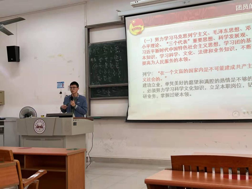 12月7日12:50,在3-203举行了第二次团课,由团委学生副书记李秋怡同学主讲。李同学先为大家讲述了共青团的发展历程,包括介绍了团的两次建立和两次改名时期的经历。之后又逐句讲解了团的组织制度内容,让入团积极分子们深入学习了团的民主集中制的基本原则和组织制度,同时也不忘提醒同学们践行学习科学、文化和业务知识,不断提高为人民服务的本领。