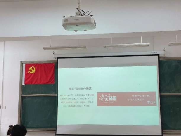 陈金涛同志对本支部党员整体的学习强国积分情况进行了肯定,也提出了不足。同时,针对支部现存问题指出了改进方向,希望我们作为学校唯一的理工类党支部可以利用学科优势扩展品牌活动的形式和覆盖面,建立起支部特色。