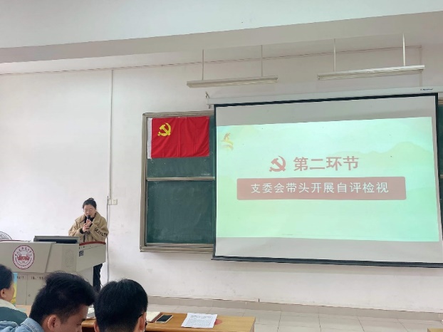 支委会带头重点从学习强国积分情况、“三会一课”的参加与党史学习情况、通读《论中国共产党历史》等四本推荐书目情况、党员条件和义务权利践行情况和发挥党员先锋模范作用情况五个方面逐一开展自我检视。