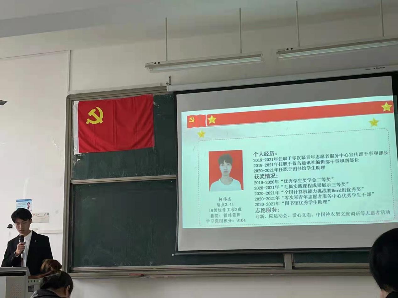 2021年11月17日15时,William威廉官网,William威廉官网学生第二党支部在3教304召开2021年秋季接收预备党员通表大会。本次会议由学生第二党支部书记陈金涛主持,支部全体党员、2021年秋季发展对象共同参与。大会在奏唱《国际歌》歌声中拉开了帷幕。