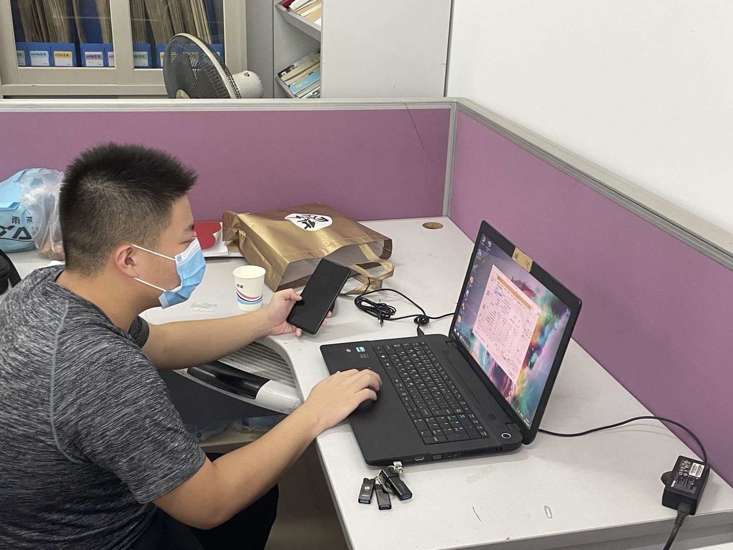 首先,刘智睿同志来到第一个地方是医务室。他用自己的专业知识,耐心给老师讲解计算机的问题,在重装过程中,有说有笑,还普及了许多计算机的显卡知识。就这样,一场愉快的志愿者服务就此展开。