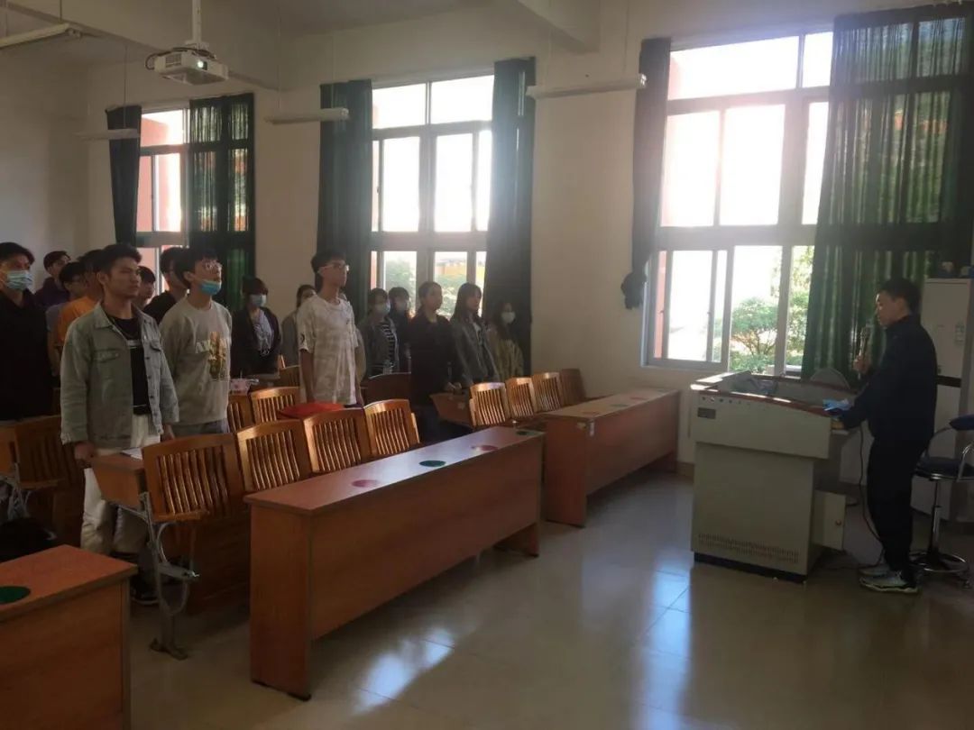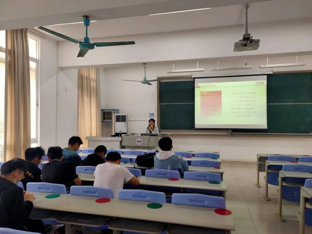 首先,作为党员的团课老师为大家说明开展此次团课的原因和意义,简单介绍了中国共产主义青年团,并播放了一段关于介绍中国共产主义青年团的视频,通过视频介绍加强团员们对于共青团的认识。在课上,团课老师盘晓云同志也通过一问一答的方式引导出共青团团旗、中国共青团团员证和团费的相关知识,并且与大家一起唱共青团的团歌——《光荣啊!中国共青团》。