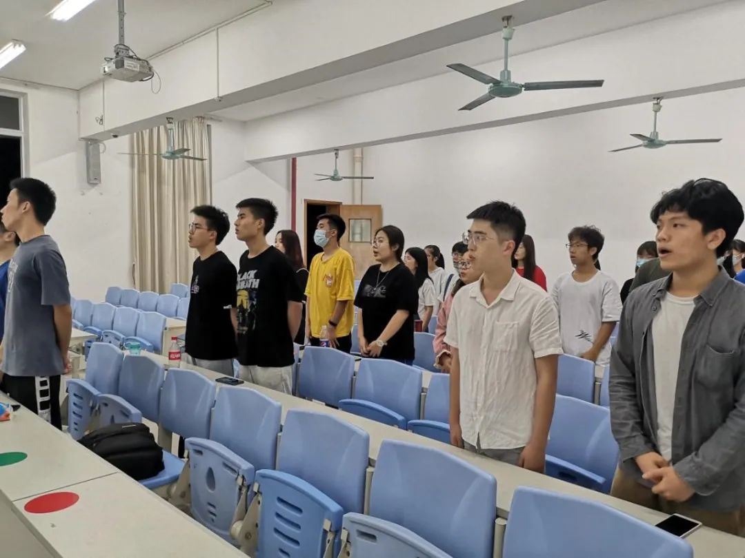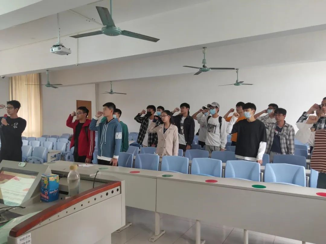 课程开始,19电子2班全体团员起立合唱中国共青团团歌《光荣啊!中国共青团》,而后,团课老师蔡毓灵同志为团员们讲述了共青团的基本知识和入团条件,然后向同学们一一陈述入团流程,并与在场的同学们进行互动,解答同学们提出的问题。