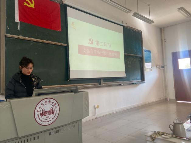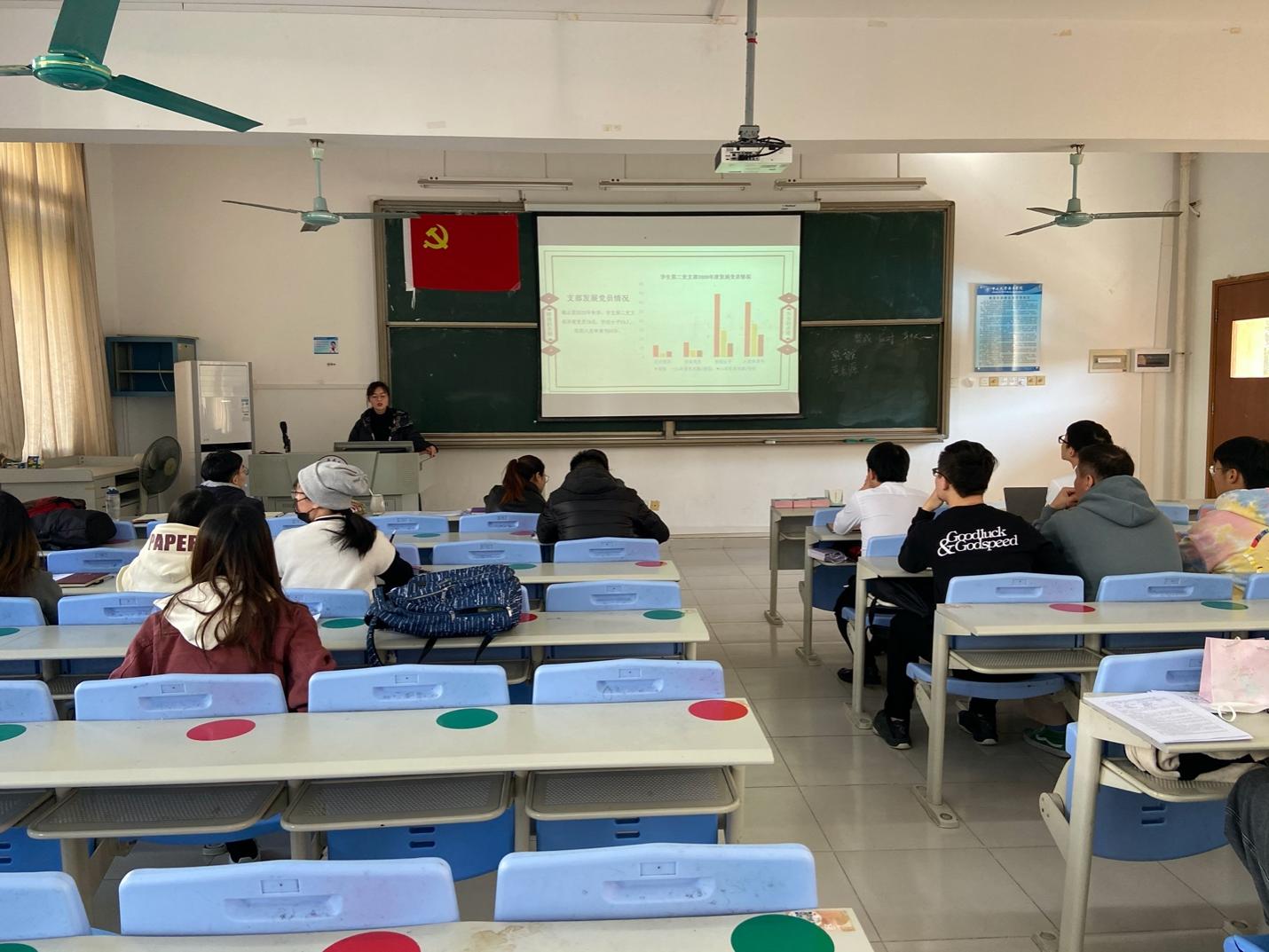 陈金涛老师从谈心谈话、支部发展党员、“三会一课”制度落实、党费收纳和使用、支部活动开展、党建带团建、学习强国积分、年度内党员参加组织生活、支部存在问题和未来展望等方面,向全体参会人员汇报了这一年来党支部的工作情况。
