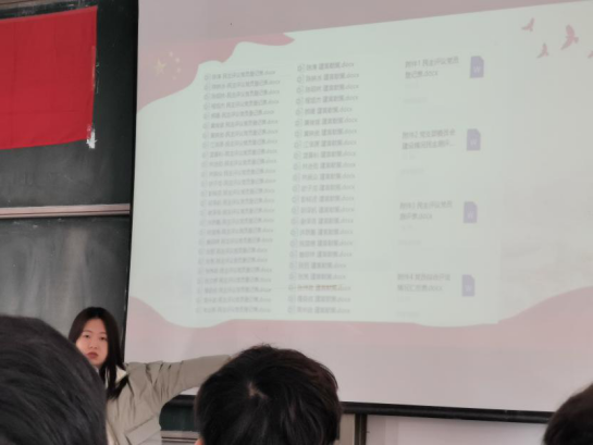 张文婷老师从支部概况、“三会一课”开展情况、主题党日活动开展、品牌活动建设情况、学习强国积分情况、党建带团建情况、党费收缴和使用情况、党员参加组织生活情况、支部存在的问题与不足、未来展望等多个方面逐一展开工作汇报。