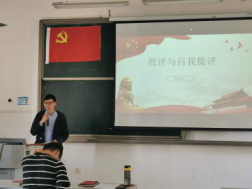 苑俊英老师表示,学生党员作为学生中的优秀分子,需要在各方面发挥自己的先锋模范作用。其中,17级学生党员要积极就业,在实践中不断提升专业能力;18级学生党员应该把握好在校生的优势,积极参加学科竞赛、创新实践项目等,要主动学习,积极行动起来,切勿拖延。苑老师还特别强调,作为党员要在身边事情上起到模范先锋作用,积极去做一些力所能及的事情,也要为支部的发展建设贡献出一份自己的力量。