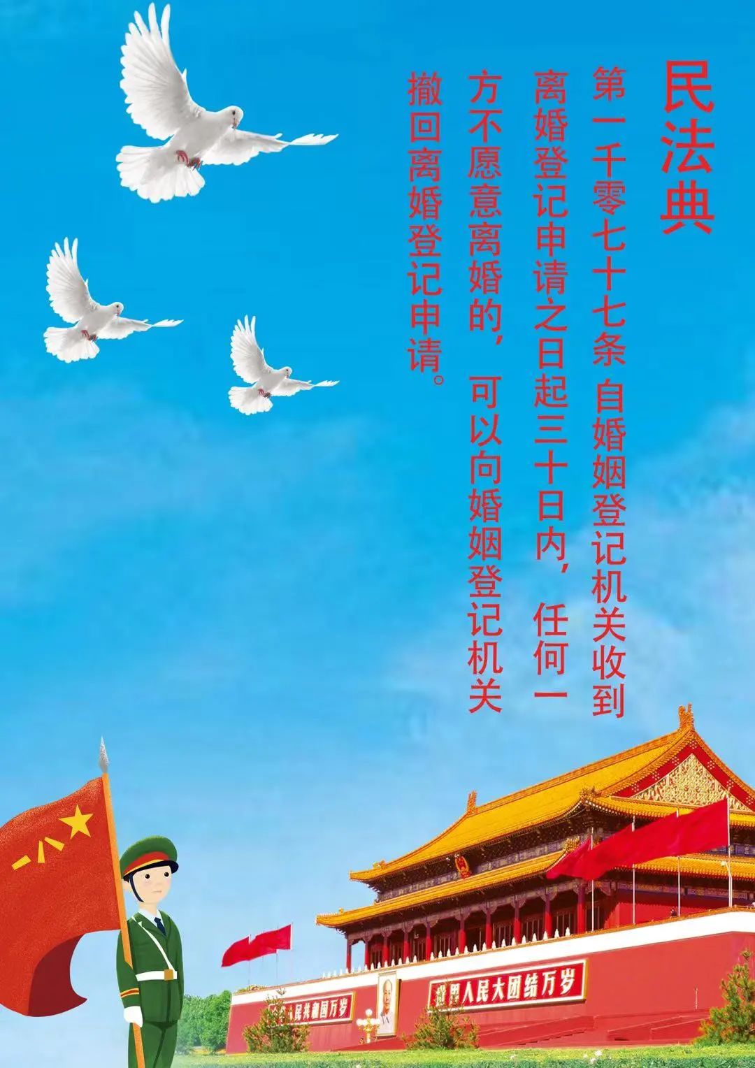 《中华人民共和国民法典》2021年1月1日起施行,民法典共7编、1260条,各编依次为总则、物权、合同、人格权、婚姻家庭、继承、侵权责任,以及附则。
