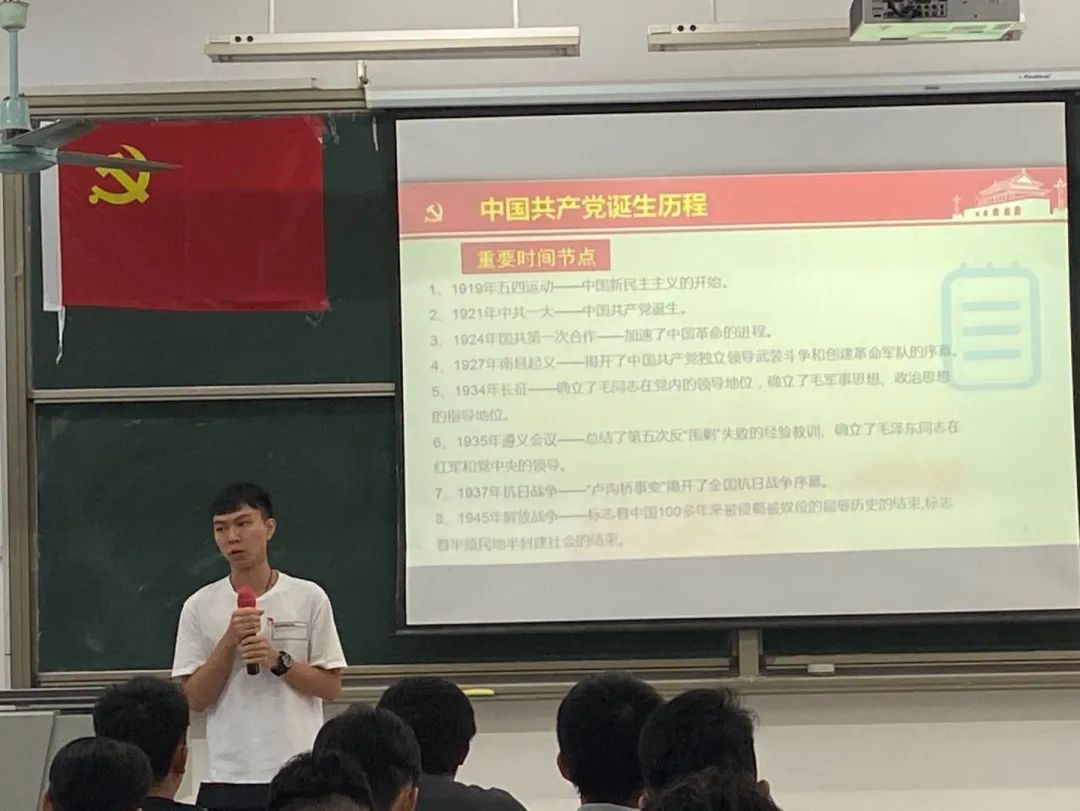了解完党史的重要时间节点之后,同学们一起观看了党的诞生历程视频——“画说党史”,对党史重要的时间节点进行了总结。