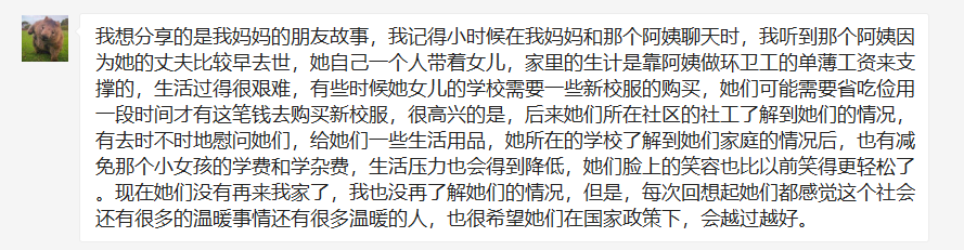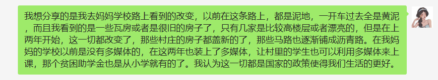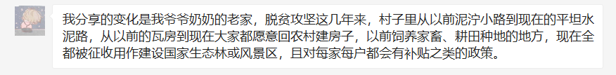 胡晓欣同志提出,脱贫攻坚这四个字是2020年的关键词,在脱贫攻坚的最后关头,让我们回顾这几年的脱贫成果,分享我们身边因为脱贫攻坚的政策而生活发生改变的事情。