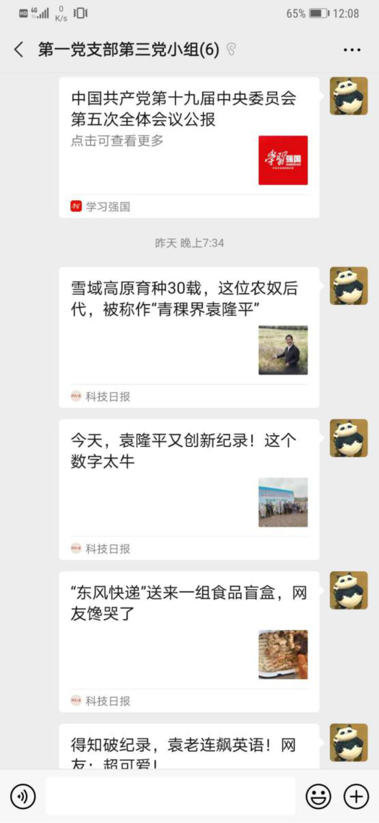 随后开展本月份的会议主题:袁隆平团队研究的第三代杂交水稻亩产超过1500公斤,对于军事,对于中国,对于世界起到了什么影响。作为一名党员,要带动周围的群众伙伴珍惜粮食,积极发挥党员先锋模范作用,从小事做起,从我做起,一点一滴的养成好习惯。