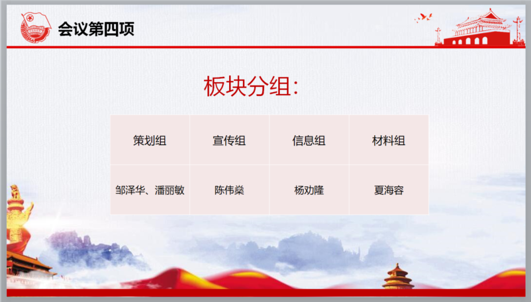 为了增进党员同志及入党积极分子的沟通及合作,让入党积极分子能有更多的机会参与到支部的活动和工作中,我们将小组细分为四个模块——策划组、宣传组、信息组、材料组,分别由党员同志带领,入党积极分子根据自身特点选择模块并参与其中。苏燕漩同志表示,希望各位党员同志能继续保持模范作用,更好地带领各个模块的入党积极分子,做好每次学习、活动的策划、组织及宣传工作,接下来也会组织党员带领积极分子参与关于党籍等相关资料的整理及存档工作。并指出,近期支部推出的团校课程,积极分子要积极参与其中,协助党员小教师,与小组的党员取得更多的联系和交流。