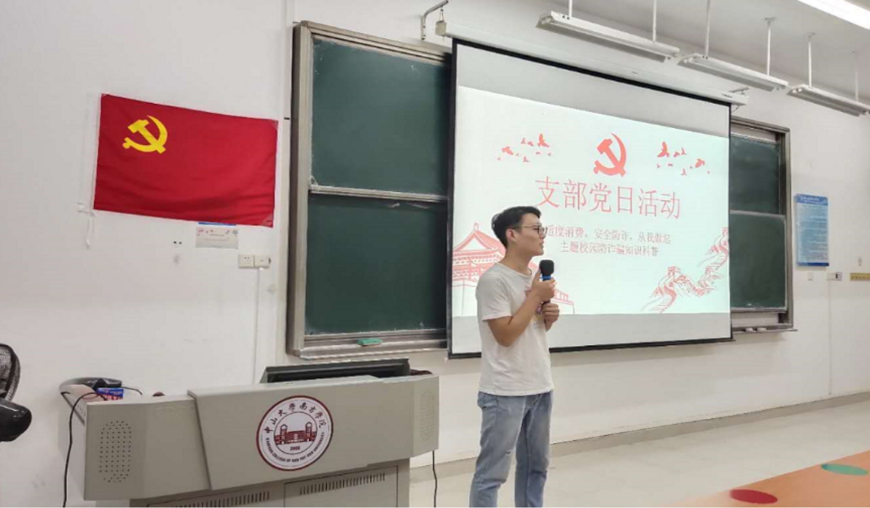 最近一段时间,各类诈骗事件大有增加。为提高学生对于诈骗的辨识度,注意人身及财产安全,同时恰逢双11“购物节”之际,倡导同学适度消费。11月7日晚18:30William威廉官网学生第一党支部在3教202举办了“适度消费,安全防诈,从我做起”——支部主题党日活动。