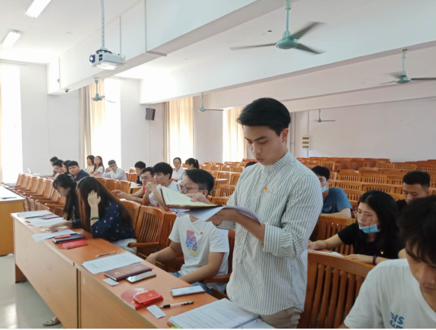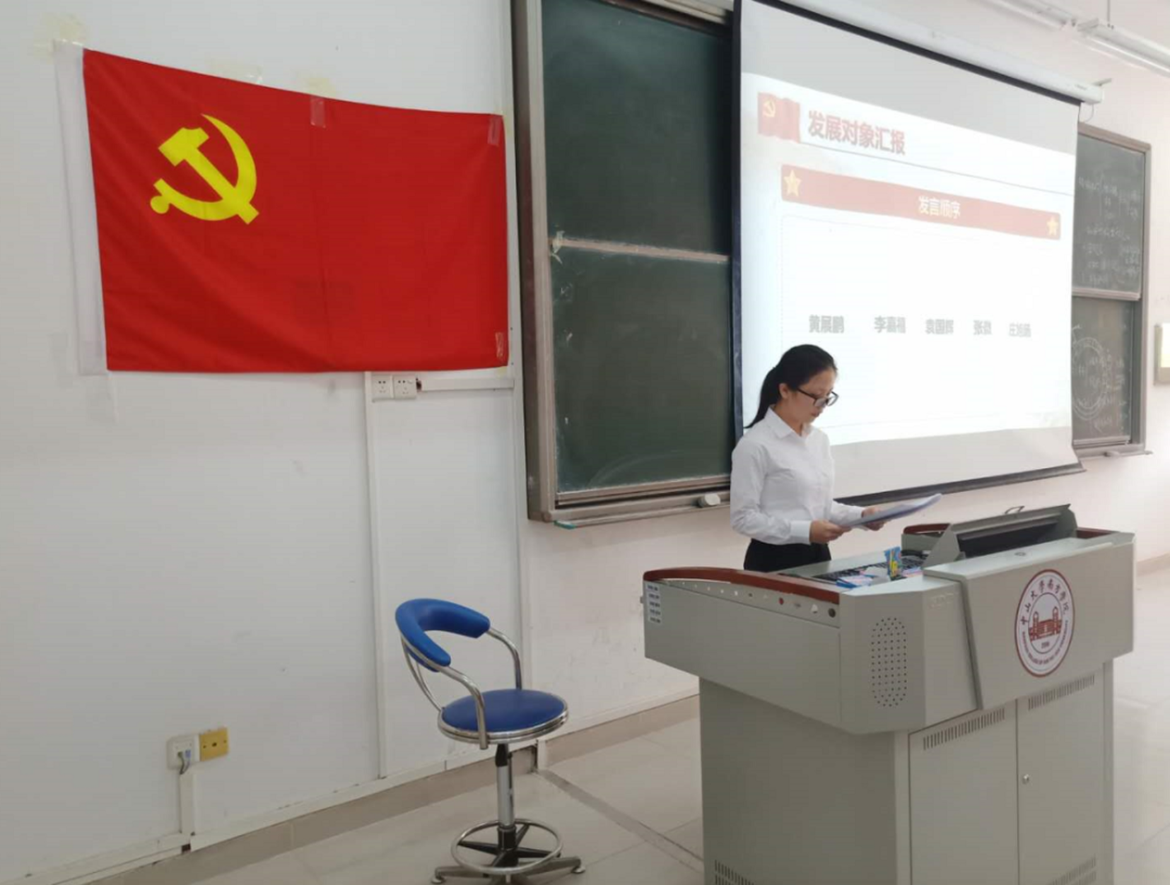 本次会议由学生第一党支部支部书记曲楠楠老师主持,学生第一党支部组织委员姜祥祥老师、宣传委员麦淳铭同志、其他党员和2020年秋季发展对象全体参加。