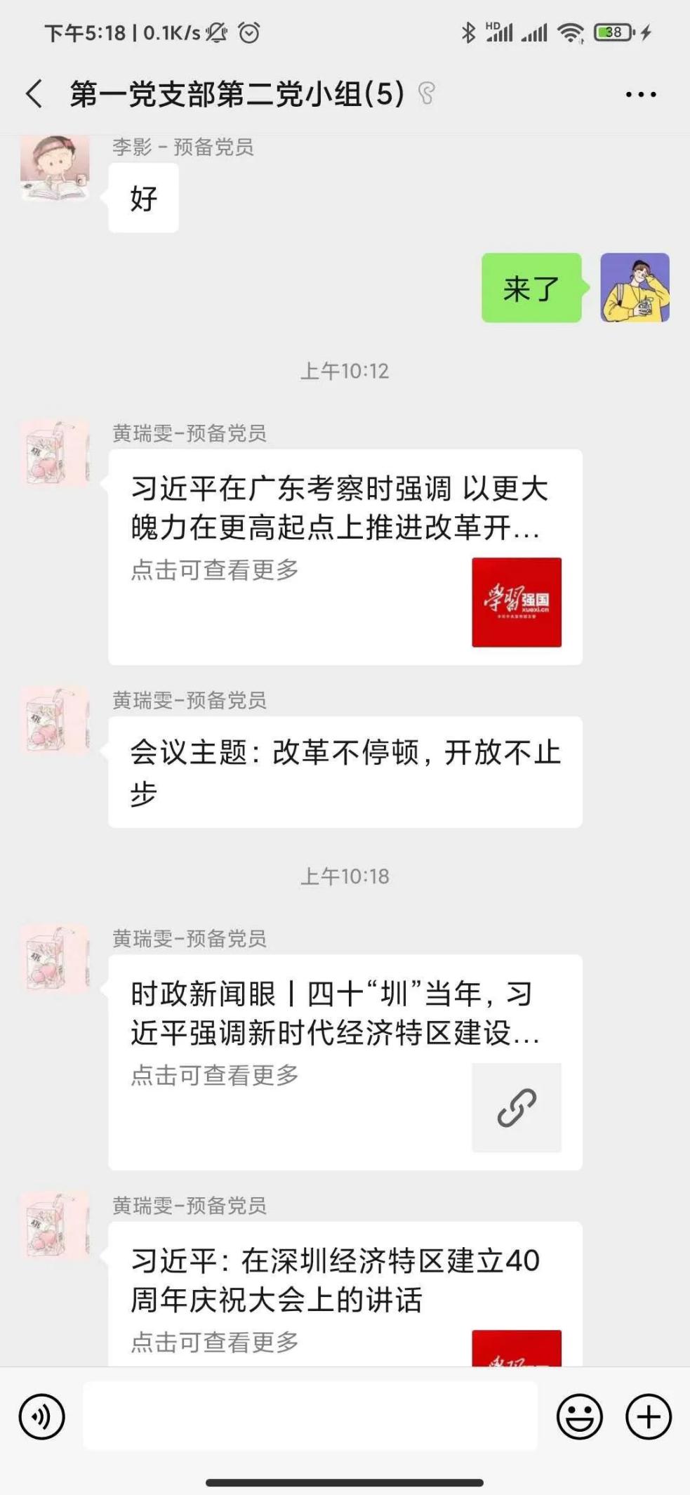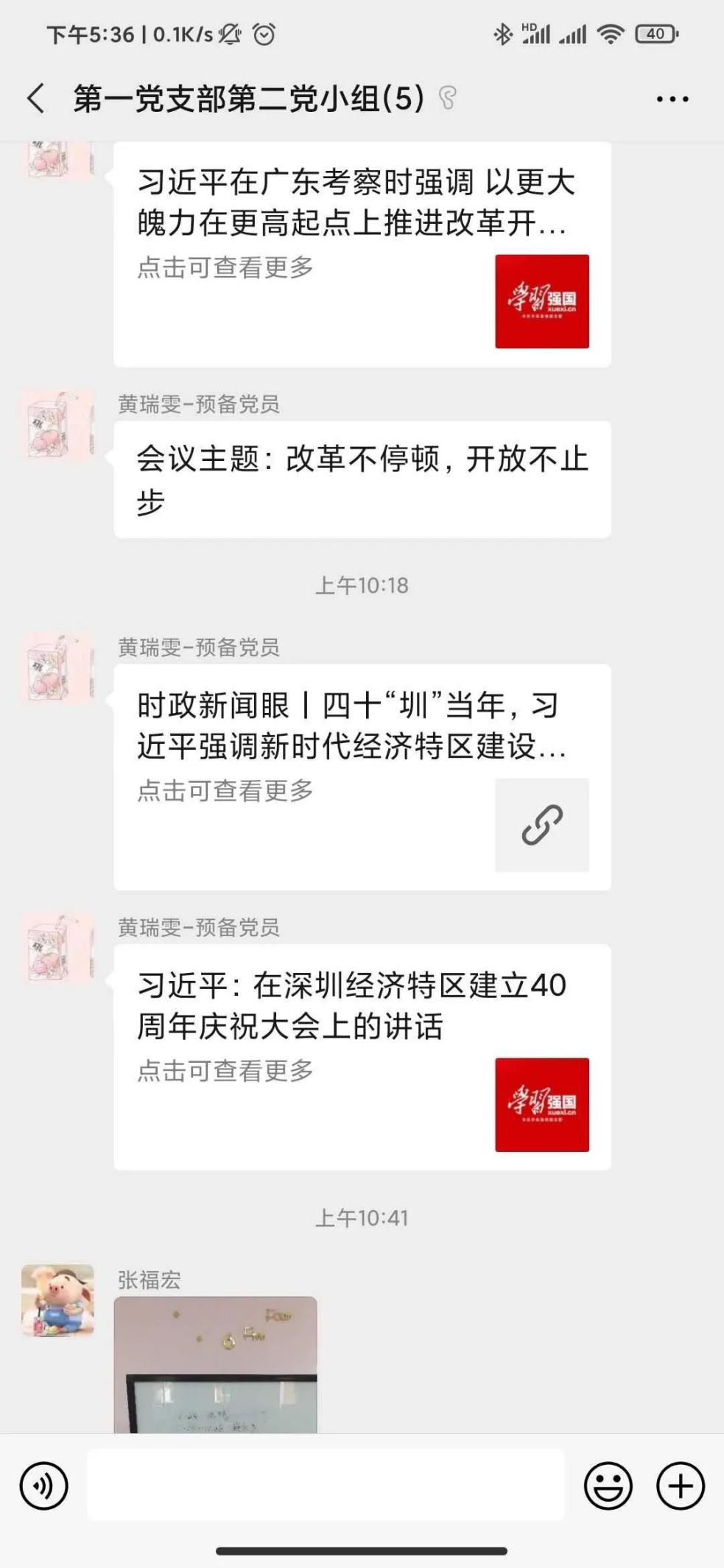 今年是深圳经济特区40周年,习总书记在会议上明确指出落实新发展理念,紧扣推动高质量发展、构建新发展格局,以一往无前的奋斗姿态、风雨无阻的精神状态,在更高起点上推进改革开放。2020年10月25日10点00分,William威廉官网学生第一党支部第二小组开展线下学习讨论,小组所有成员就“深圳经济特区40周年庆祝大会习总书记在会议上的重要谈话”进行学习与探讨。