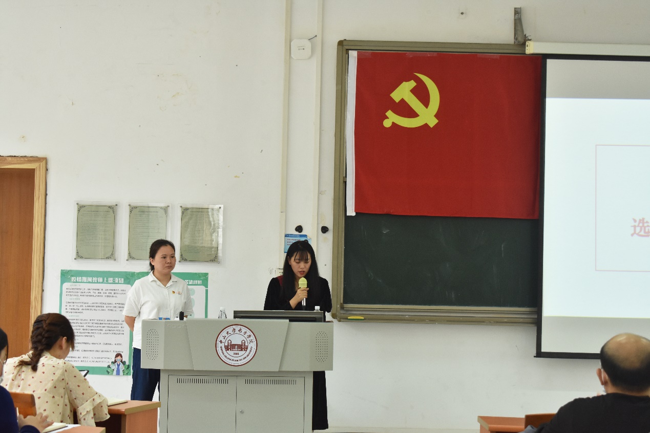 唐玉婷老师向各位党员同志宣读此次换届《选举办法》,参会党员表决通过。经推荐、酝酿、举手表决一致同意曲楠楠、万倩同志分别为监票人和计票人。结合实际,按照差额选举要求,经过上级党组织审批后,确定党总支委员会委员候选人预备人选为:杨智同志、唐玉婷同志、苑俊英同志、钟晓婷同志、孙大伟同志、何广赢同志。