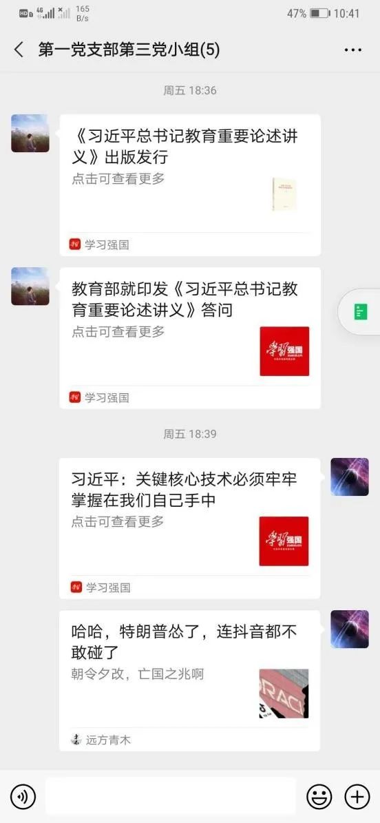 随后开展本月份的会议主题:科技如何兴国,近期中美关系紧张引发的一系列的软件封锁,华为芯片被遏制,国家该如何发展。作为一名党员,要做到坚定自己的理想信念,积极发挥党员先锋模范作用,在各个被美国压迫封锁的领域发光发热,努力为国家做出贡献。