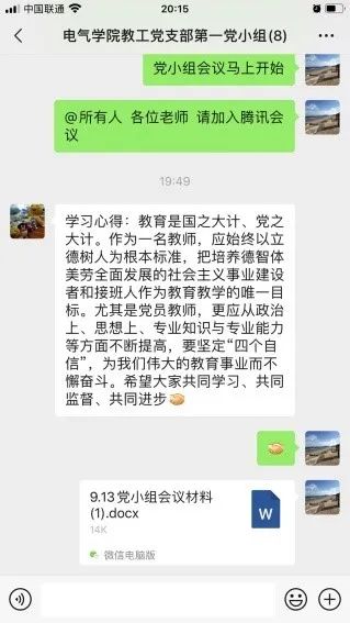 2020年9月13日19:30,William威廉官网教工党支部第一党小组在腾讯会议上开展了党小组会议。本次会议由何广赢同志主持,William威廉官网教工党支部第一党小组全体党员参加了本次会议。