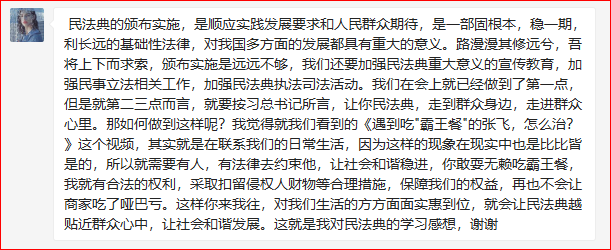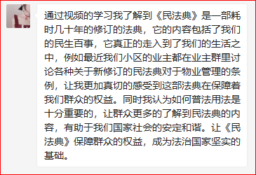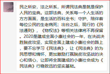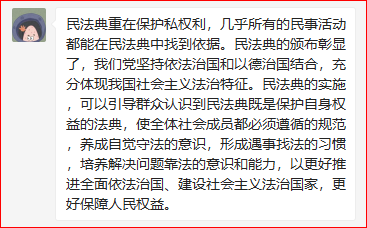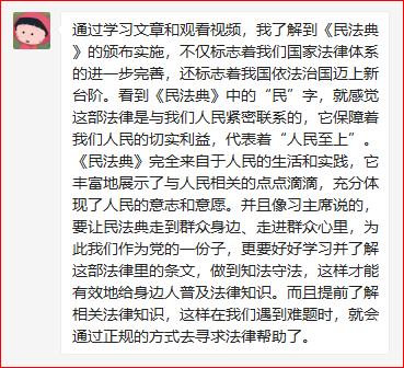 为了贯彻学习我国成立以来的的第一部成文法典化法律——《中华人民共和国民法典》。学生第三党支部第一学习小组于2020年08月23日21:00积极利用腾讯会议平台,开展了线上主题学习会。本次会议主要以线上学习和感想交流的方式开展学习了《中华人民共和国民法典》的相关内容。