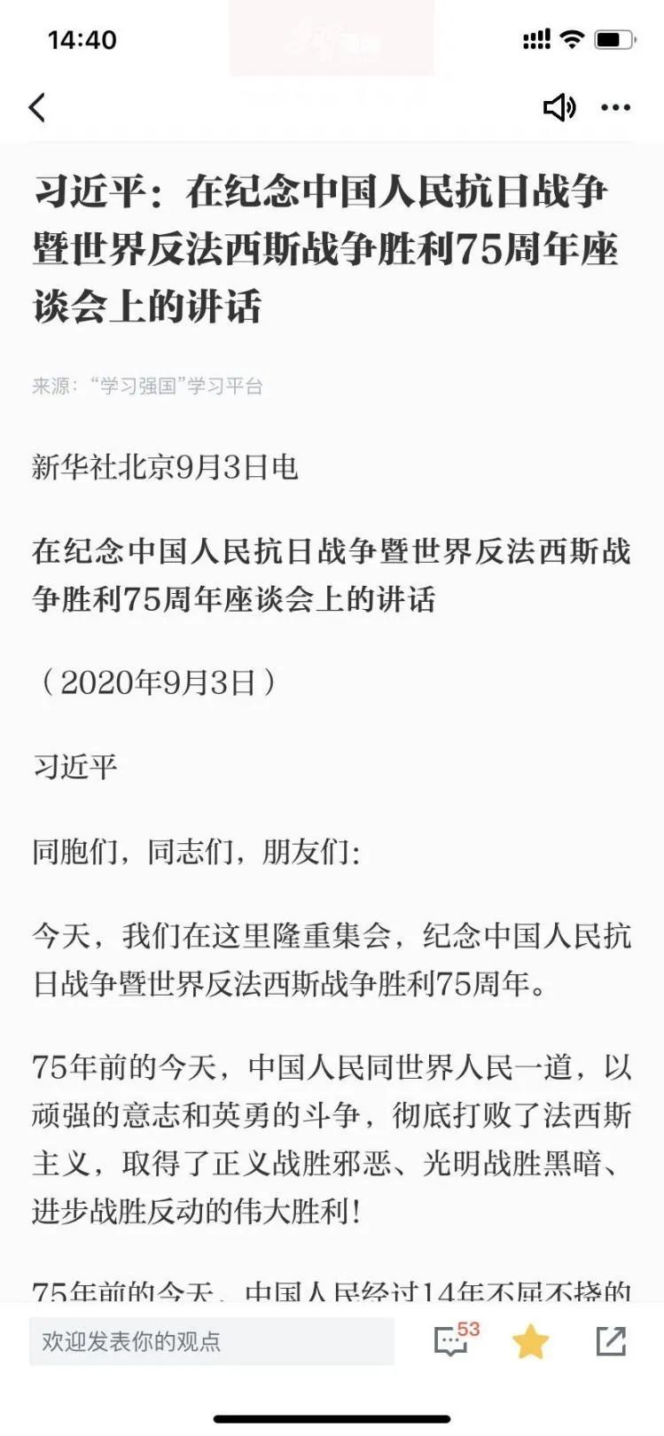 前事不忘,后事之师。75年前,全体中国人民为反法西斯斗争做出极大努力,赢得了近代以来中国反抗外敌入侵的第一次完全胜利。而今,在和平年代,中华民族在以中国共产党为核心的领导下,发愤图强、艰苦创业,逐步实现了从站起来,到富起来,到强起来的伟大飞跃。今后,在前行的道路上虽仍会遇到各式各样的风险,但我们坚信,到2021年中国共产党成立100周年时,我国会全面建成小康社会;到2049年新中国成立100周年时,我国将建成富强、民主、文明、和谐、美丽的社会主义现代化强国!