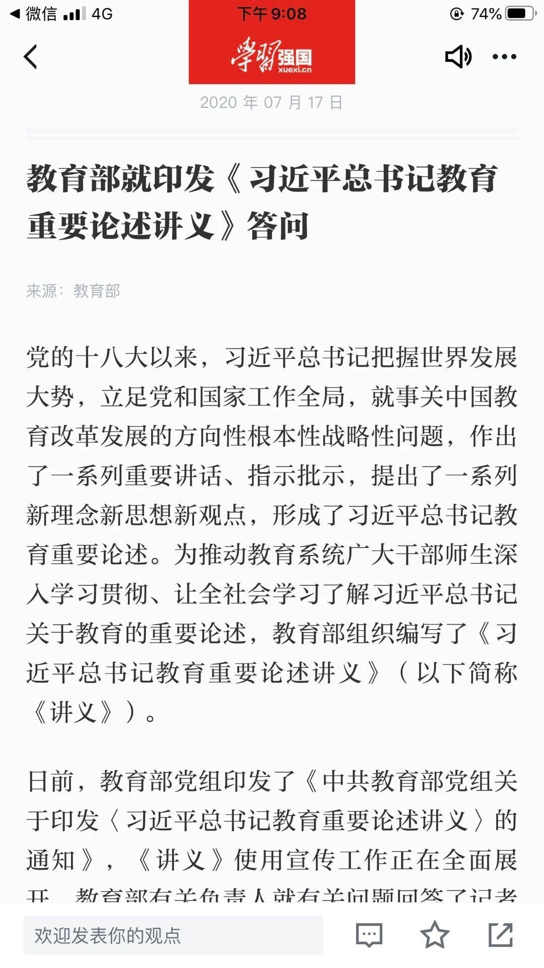 结合教育部就印发《习近平总书记教育重要论述讲义》答问,认识、领会习近平总书记关于教育的重要论述的重大意义。
