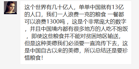 正如习近平总书记指出的,餐饮浪费现象,触目惊心、令人痛心!“谁知盘中餐,粒粒皆辛苦。”尽管我国粮食生产连年丰收,对粮食安全还是始终要有危机意识,今年全球新冠肺炎疫情所带来的影响更是给我们敲响了警钟。联合国粮食及农业组织、世界粮食计划署等机构联合发布的报告显示,新冠疫情可能导致新增1.3亿名饥饿人口,全世界将有6.9亿人处于饥饿状态。