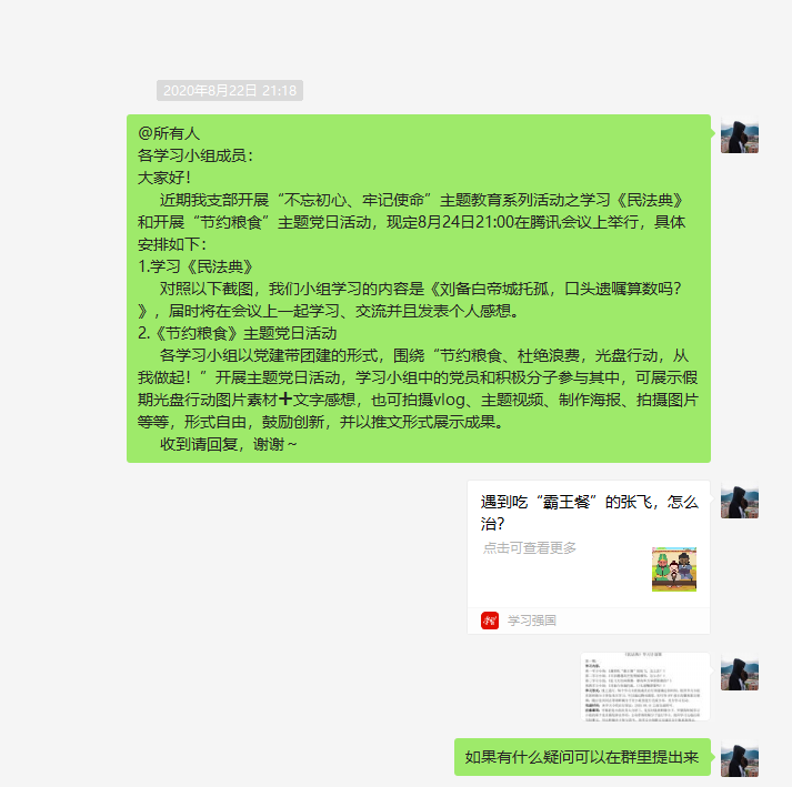 紧接着,大家以图片素材及文字感想的形式进行此次党日活动的学习与分享。
