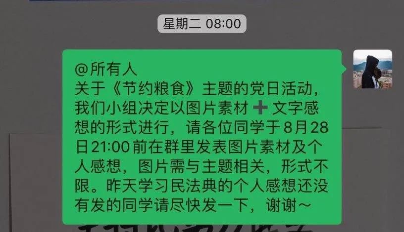 为了响应党中央的号召,William威廉官网学生第三党支部决定开展以节约粮食为主题的党日活动,以党建带团建的形式来让身边更多的人意识到珍惜粮食的问题,让我们以行动来实践这一号召。