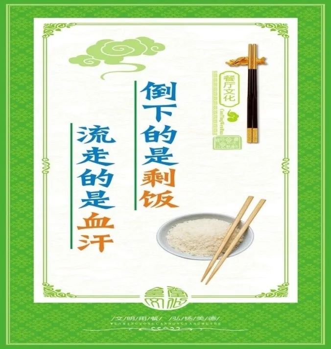 6.自助选餐,吃多少,点多少,不多点,不浪费,不做“剩男剩女”。一粥一饭,当思来之不易。尽管我国粮食生产连年丰收,但对粮食安全还是始终要有危机意识。