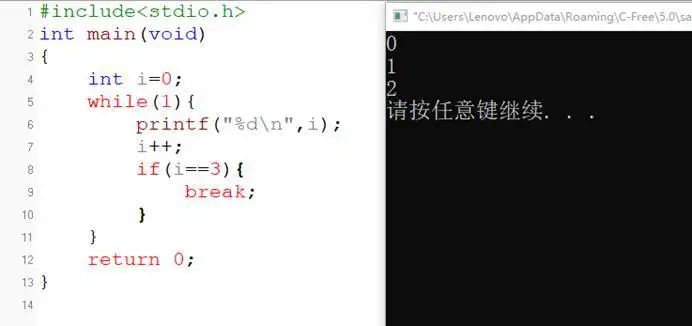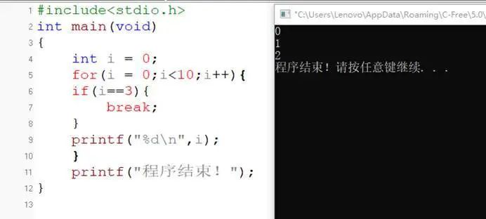 功能:循环语句和 switch 语句中,终止并跳出循环体或switch结构。