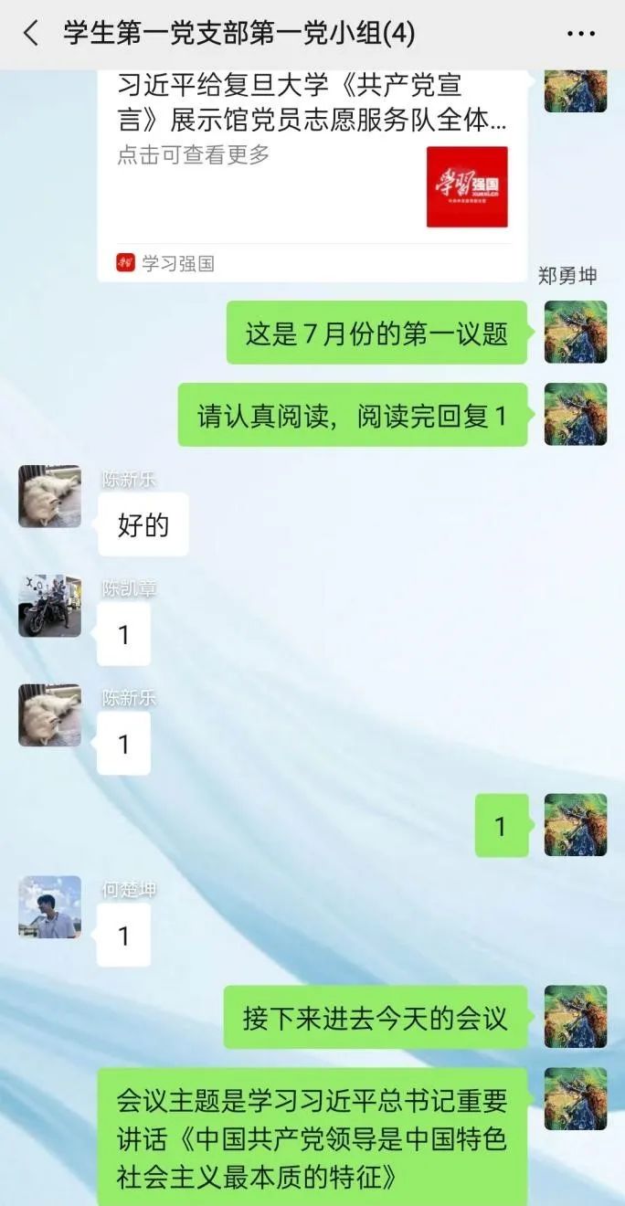首先,同志们开展本月的第一议题的学习,学习习近平给复旦大学《共产党宣言》展示馆党员志愿服务队全体队员的回信。
