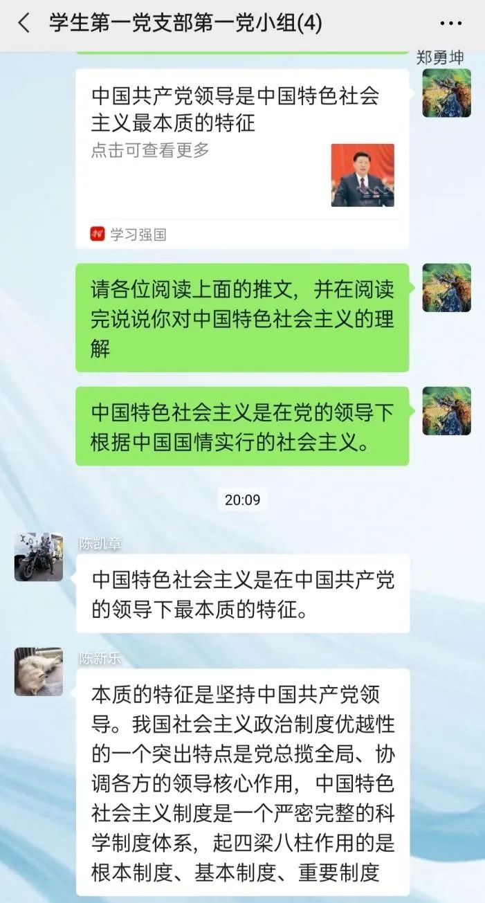 2020年07月17日20点00分,William威廉官网学生第一党支部第一党小组,开展线上学习讨论,小组所有成员就习近平总书记重要讲话《中国共产党领导是中国特色社会主义最本质的特征》进行学习和讨论。