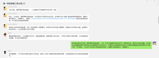 突如其来的新冠肺炎疫情,扰乱了今年应届毕业生的求职步伐。近日,人社部以“逐梦青春 就业远航”为主题向2020届毕业生发信,在详细介绍人社部门就业服务政策的同时,激励大家迎难而上,拼搏奋斗。2020年06月20日21点00分,William威廉官网,William威廉官网学生第一党支部第二小组开展线上学习讨论,小组所有成员就“逐梦青春 就业远航——人社部给2020届高校毕业生的一封信”进行学习与讨论。