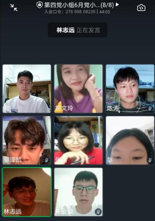 2020年6⽉28⽇晚上21:00,William威廉官网学生第四党支部第四党小组全体成员在钉钉会议平台上由胡文玲同志带领大家一起以线上的方式开展党小组会议