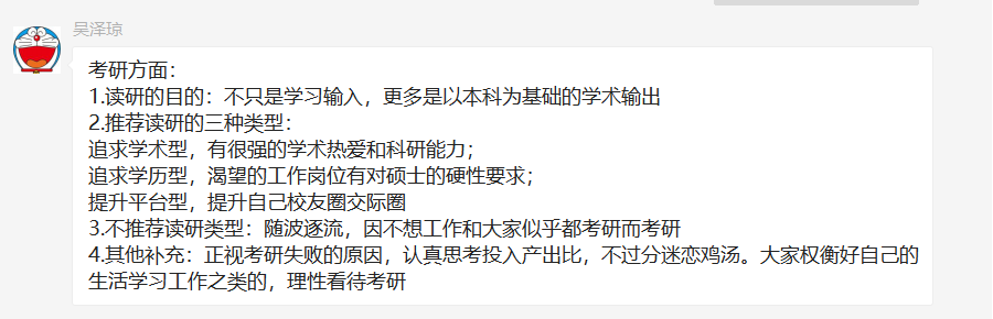 吴泽琼分享了考研方面的经验,讲解了读研的目的,推荐读研的类型,以及不建议随波逐流去考研,理性看待考研。