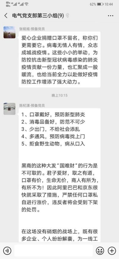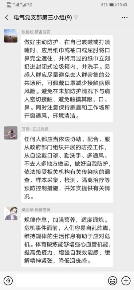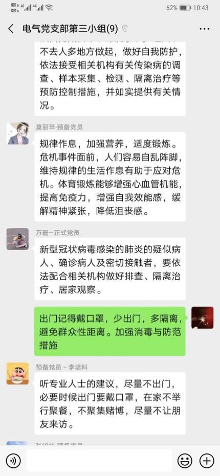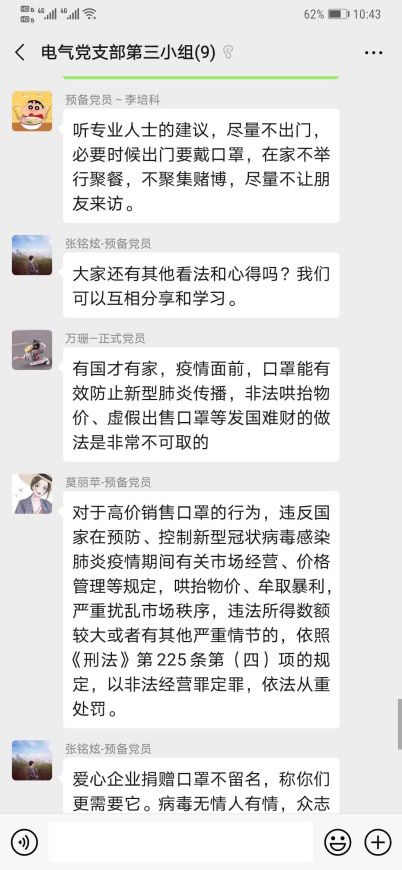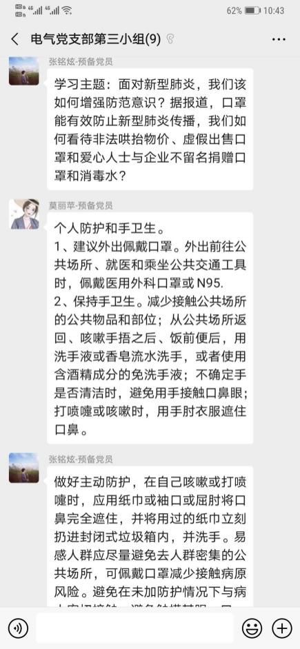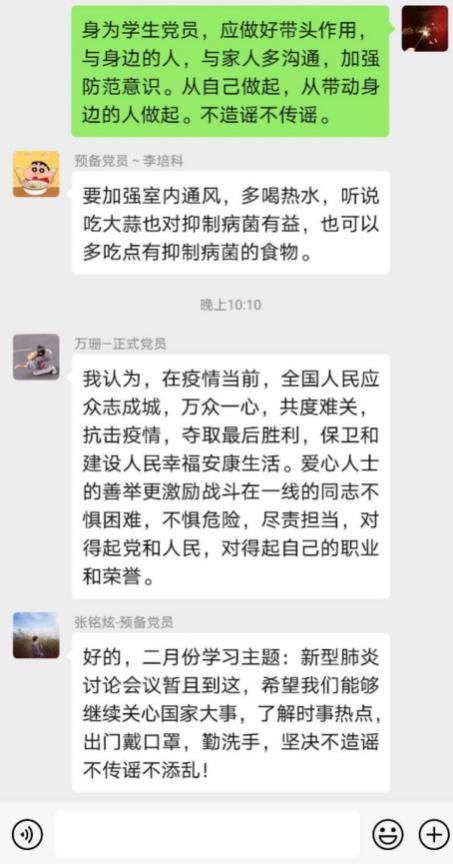 为深入贯彻落实习近平总书记在“不忘初心、牢记使命”主题教育工作会议上的重要指示精神,同时为了在新型肺炎形势严重期间,如何增强我们防范意识。2020年02月19日22点00分,William威廉官网,William威廉官网学生第一党支部第三党小组开展线上学习交流疫情期间如何正确有效防范,小组所有成员各抒己见同时结合实际生活,分享防范新型肺炎的小技巧。