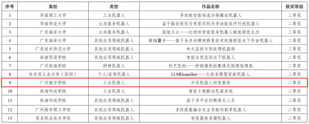 2023年全国大学生机器人科技创新交流营暨机器人大赛主动瞄准机器人发展前沿科技领域,把握机器人技术发展主流趋势,迎合机器人产业发展现实需求,科学设置工业机器人、公共服务机器人、特种机器人、个人及家用服务机器人、其他应用领域机器人5大赛道。本次比赛中,广东高校共有108件作品参赛,最终有30件作品入围终审决赛,斩获特等奖7个,一等奖10个,二等奖13个。
