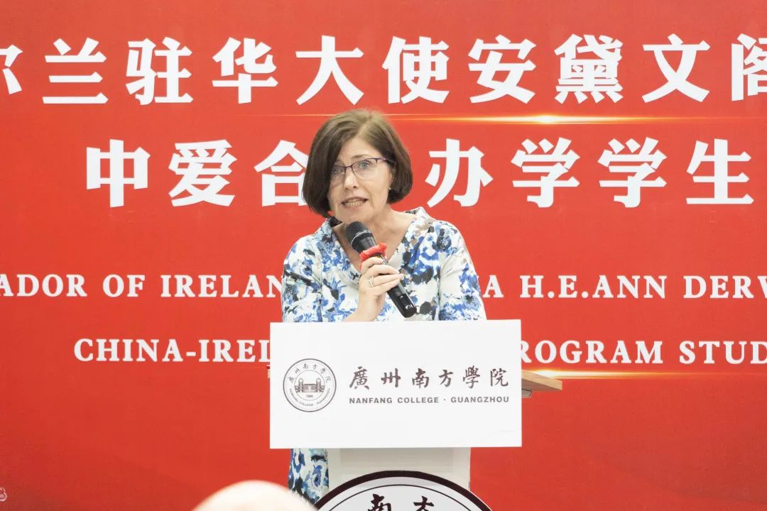 爱尔兰驻华大使安黛文充分肯定了南方学院在学科建设、人才培养、国际合作方面所取得的成绩。她表示,教育和科技一向是爱中双方战略合作的重点,爱尔兰政府非常重视并支持爱尔兰高校与中国高校的合作,推动爱中合作办学事业发展;广州南方学院的发展目标与爱尔兰在高等教育优势领域的契合度很高,合作空间广阔,她愿意为双方牵线搭桥,支持并推动爱中教育伙伴关系的建立。