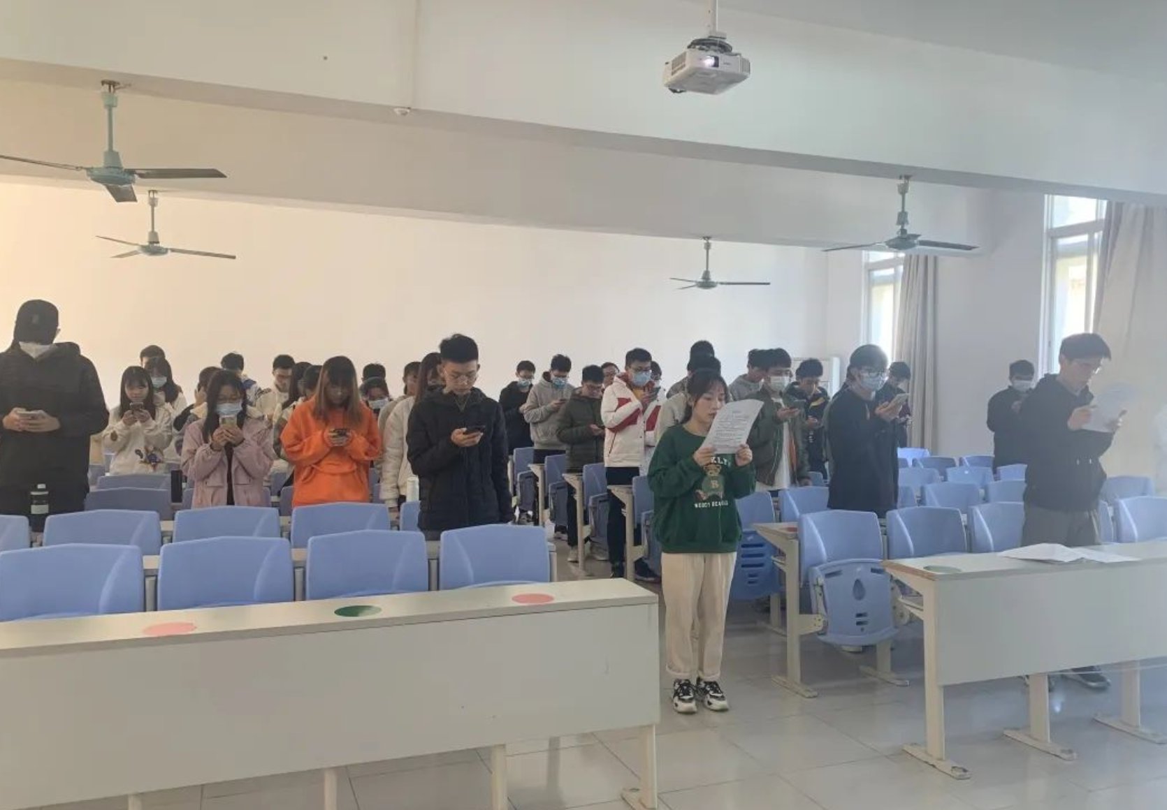 在院系分会场的现场,大家在网络直播“宪法晨读活动”主会场教育部领导的领读下,共同诵读宪法部分条款,学习宪法知识;并在宪法主题曲《宪法伴我们成长》中体会宪法温度、感受宪法力量。